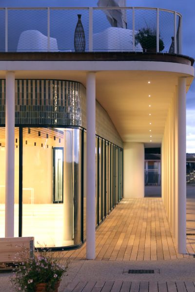 Le pavillon des bains, situé dans un lieu emblématique de Deauville, s’inscrit avec subtilité dans son patrimoine et dialogue avec le paysage environnant. Conçu pour être à la fois sobre et convivial, il offre un parcours belvédère qui prolonge la promenade naturelle et invite les visiteurs à contempler le site sous un nouvel angle.